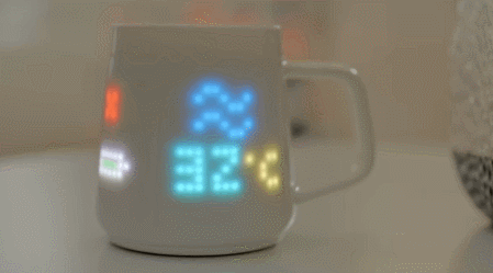 PixelMug comes mini games such as Vegas slots. You can also link up your mugs to send animated messages to others. This is IPX7 waterproof rated. This project is getting funded on Kickstarter.