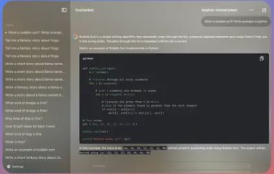 Enchanted LLM lets you switch between models to see which ones do better with your prompts. It supports markdowns. The app keeps track of your conversation history. You can enter information with your voice. With multimodal support, you can add images to your conversations.