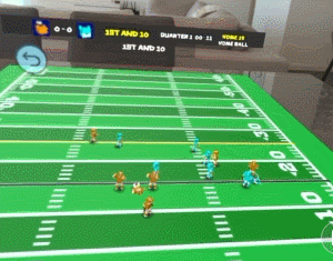 Touchdown Tumble: a mixed reality football game that you can play anywhere. It has a tap and drag control system.