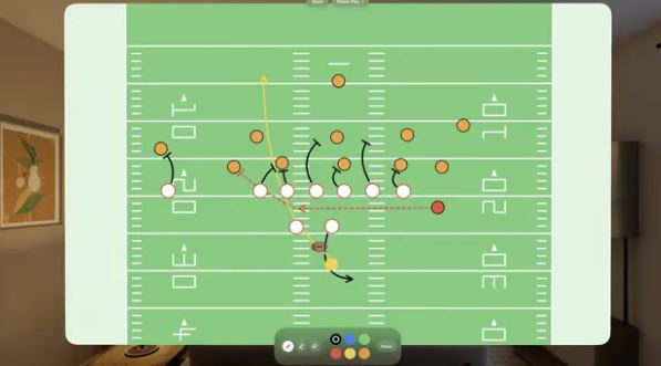 Coach Whiteboard: a simple Vision Pro app for football coaches. You can use it to sketch out your plays and drills. It has various drawing tools to make your life easier. You can drag, resize, and rotate the arrows, shapes, and players.