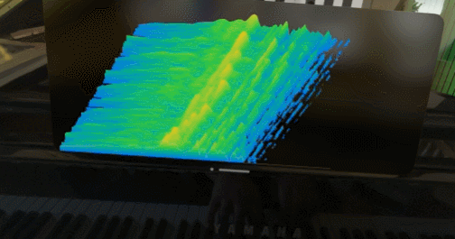 Synesthesia AR: a sound visualization app with chord analyzer, tuner, waveform, spectrogram, and equalizer. It comes with AI driven analysis to help you learn and compose music. Its visual interface makes it easy for people learning sheet music.
