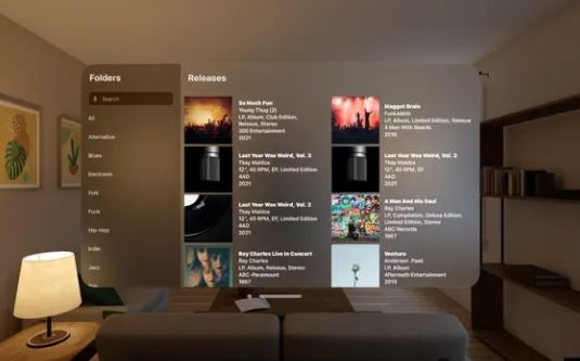 Here is another cool music app for the Vision Pro. Vinyl Vision brings your Discogs vinyl collection to life in your space. It displays the artwork in high quality. You will be able to flip through your collection effortlessly. This app syncs your vinyl inventory. It lets you easily sort your collections and navigate custom folders.