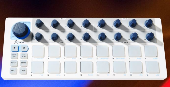 Meet the Arturia BeatStep: a USB/MIDI/CV controller & sequencer that gives you control over DAWs, drum software, VST effects, and MIDI instruments. It comes with 16 pressure and  velocity sensitive pads, rotary encoders, and a jogwheel. In controller mode, the pads and rotary encoder knobs can be used to interact with an iPad.
