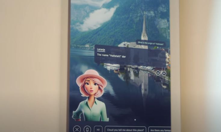 This is the Atmoph Window Yo: a Window shaped 27-inch smart display that makes your home smarter. It brings a taste of outside world indoors with 6K nature videos and sounds from all over the world. You can also try 3D games or use this to keep up with your calendar. The AI assistant is based on GPT trained on Atmoph’s landscape information database and landscape images.