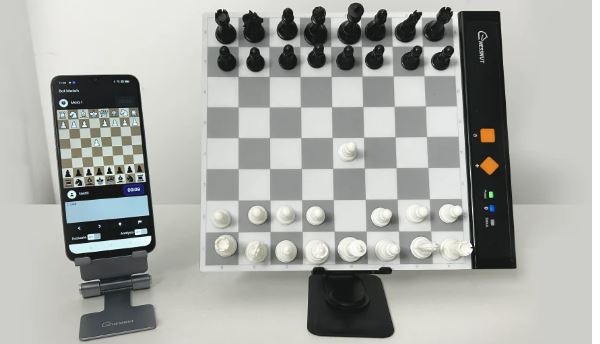 Chessnut electronic chessboards are quite popular these days. They can connect to Lichess and Chess.com and let you play and analyze your games. They feature smart piece recognition. The Chessnut GO is one of the smartest portable chess boards ever made. It features full piece recognition. It combines with your phone to let you play on a real board. It has a footprint of 10.5 x 10.5 x 9 inches.
