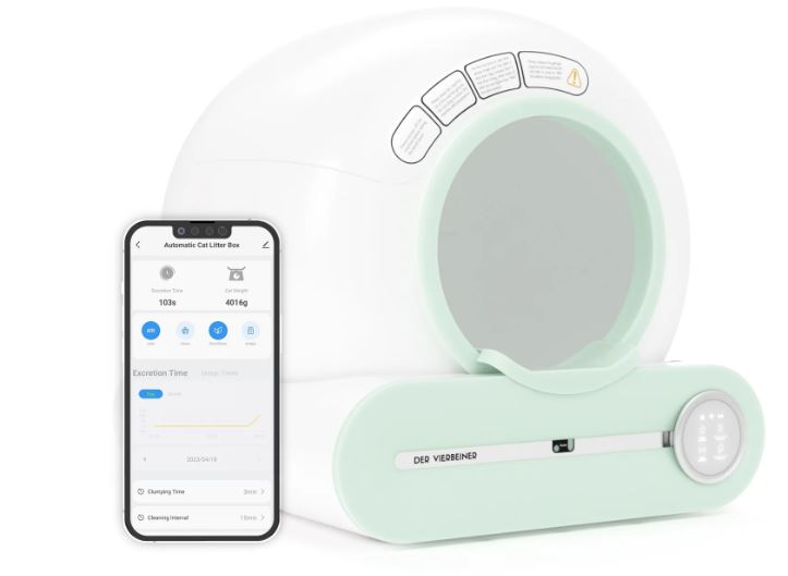This robotic litter box uses smart sensors for safe operation. It has an infrared sensor and weight sensors. It has room for cats from 3.5lb to 17.6lb. With noise rating of 45dB, you don’t have to worry about your cats getting scared. Der Vierbeiner’s litter box works with all clumping litter. Its app lets you monitor time and frequency as well as litter status.