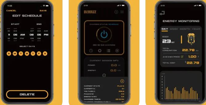 EV chargers are getting more reliable and smarter every year. The latest model feature app control and Alexa support. The DEWALT’s Level 2 48amp Wall Mounted Electric Vehicle Charger is the latest model that can add up to 46 miles per hour of charge to your vehicle. The DEWALT EV Charger app lets you stop and start each session. You can monitor charging sessions in real-time and schedule off-peak sessions.