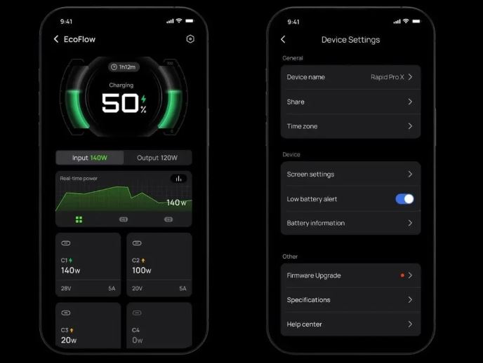 The ECOFLOW Rapid Pro is compact enough to easily fit in your bag. Its cable is over 23 inches long. This power bank is compatible with the EcoFlow app, so you can change screen settings and monitor power status. The app lets you personalize Rapid Pro X’s display.