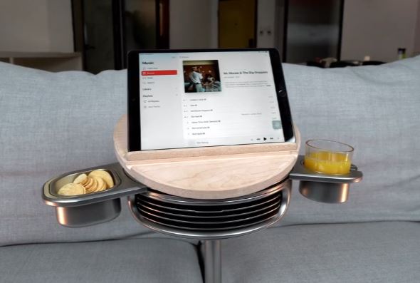 So you find yourself doing a lot of work on your couch? The Fiisto Coucha is a modular couch station that helps you relax. It comes with a cooling fan, Bluetooth speaker, snack holder, iPad stand, and wireless charger for your phone. It has a fan with max speed of 4.5m/s, operating at 45dB to keep you cool. It comes with a 10w wireless charging pad.