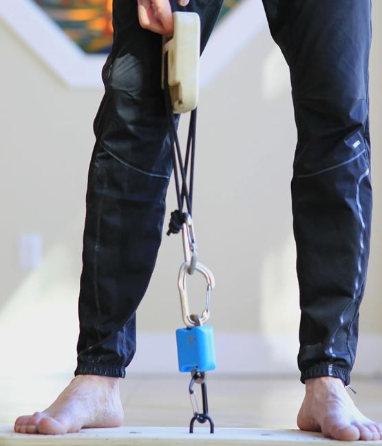 This is the Force Board: an app connected Bluetooth dynamometer for isometric strength training. It connects to your smartphone to give you real-time feedback as you exercise. It is ready for two and one-handed training. This gadget captures your rate of force development on every rep. It can track loads up to 1000lbs depending on the model you go with.