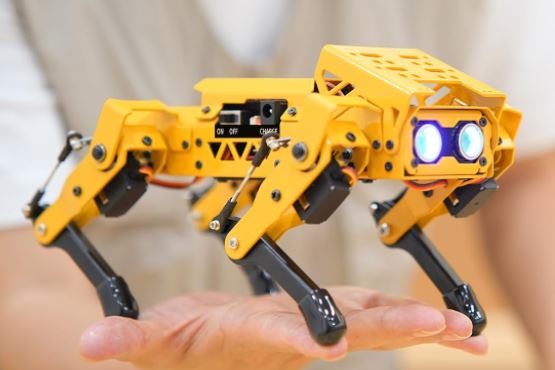 Here is another open source robot that can take your coding to the next level. The Hiwonder MechDog has 8 high-speed coreless servos and an ESP32 controller. It can be expanded with ultrasonic, IMU, and other sensors. You can program this in Python, Arduino and Scratch. This robot is compact enough to fit in the palm of your hand. It can adjust its body posture and angle to move around.