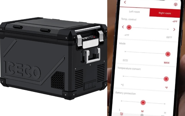 0Meet the ICECO APL55: a smartphone connected portable fridge that keeps your food and drinks cool. The has a cooling range of -4F to 68F. This 12V refrigerator has 12/24V DC ports on both sides. It also has 4 USB outlets to charge your mobile devices.