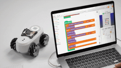 This is the ilo robot: an educational robot made to get kids familiar with robotics and STEM concepts. It is ready for Python and Block based programming. ilo comes with mecanum wheels, so it can easily move in every direction. It has WiFi, Bluetooth, and USB connectivity. This robot can be used with a robotic arm, pen holder, camera, and other modules.
