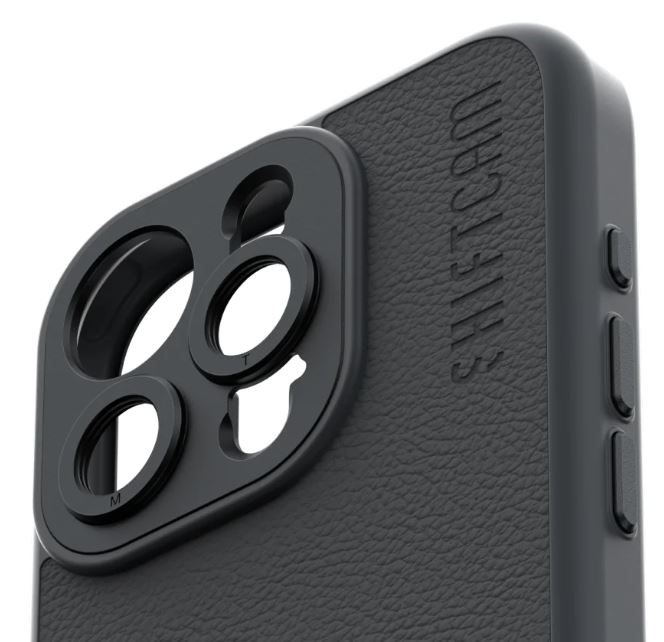 ShiftCam Lens Ultra: a rugged vegan leather iPhone case with an aluminum mount. It is MagSafe compatible. It has 2m drop protection. You can use this with tele, macro, and various other lenses.