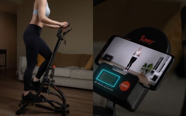 Sunny Healthy & Fitness is behind plenty of affordable smart exercise machines. The SF-S021001 is their smart Climber Stepper with Handlebar. It works your upper body, core and lower body. It has a dual hydraulic system with adjustable step heights. It has handlebars for a safe workout. It also has pulse sensors built-in.