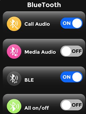 You can turn on/off media, Bluetooth, and other functions through the display.  This gadget has other standard features such as remote phone capture and phone locator. You can find out more about it here.