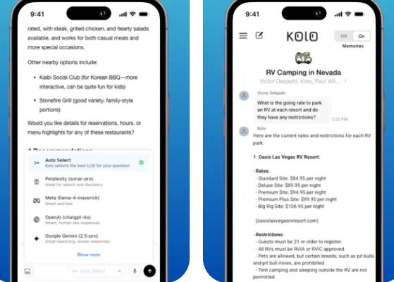 This app supports various LLMs, including OpenAI, Gemini, and Grok. It analyzes your queries to determine which model is better for the job at hand. Kolo can remember your preferences and details to deliver more accurate results. You have the option to delete or keep memories private.