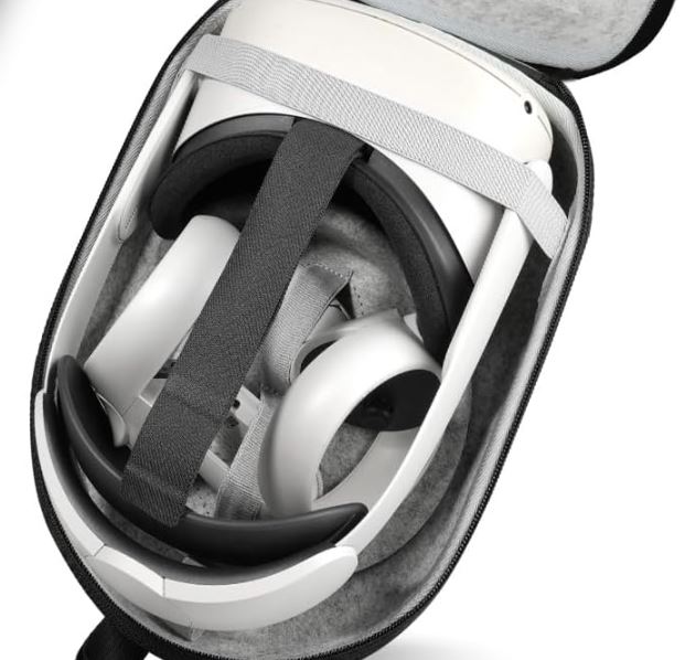 BnLnHOGVR Universal Headset Case: a protective case for Meta Quest, Apple Vision Pro, and other comparable headsets. It has a felt fabric and cow leather hand strap.