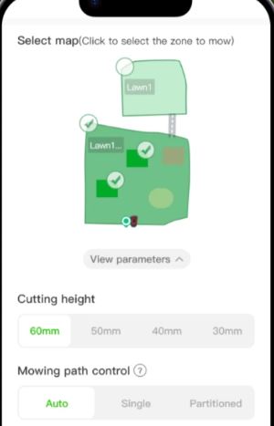 This mower keeps a safe distance from children and pets. You can map out up to 10 zones to schedule sessions on your smartphone. You can set different mowing heights and angles for each zone. The T1200 Pro also allows for no-go zones. You can set it up by defining your lawn’s virtual boundary on your phone. No wires required. The T1200 Pro has front lights for night mode.