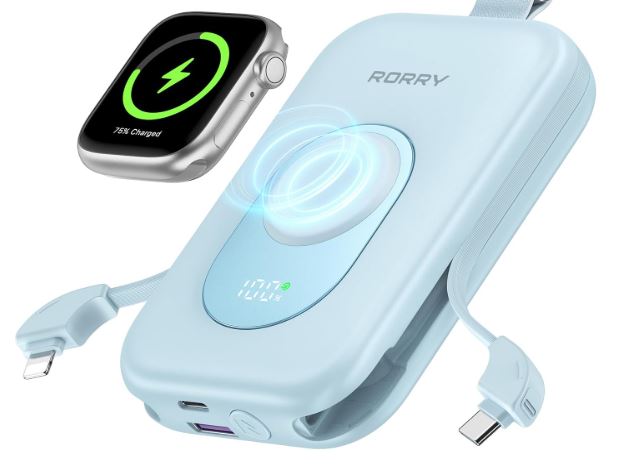 Getting stuck with a phone or smartwatch that is running low on battery is not a lot of fun. With a decent power bank, you will be able to keep your devices going for longer on the go. Take the RORRY Potable 30W 20000mAh Power Bank can help. It not only has 2 cables but also serves as a wireless charger for your gadgets. It has enough juice to charge your iPhone 16 Pro for up to 4 times.
