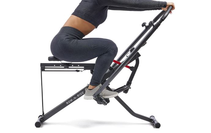 Doing squats and rowing are great ways to get your body stronger and burn a lot of calories. The Sunny Health & Fitness Smart Row-N-Ride Trainer lets you do both moves. It is an iPhone compatible rower and squat assist machine that lets you transition between modes easily. It can work your legs, calves, glutes, and quads in the squad mode. You can turn its handlebar into two independent rowing bars.