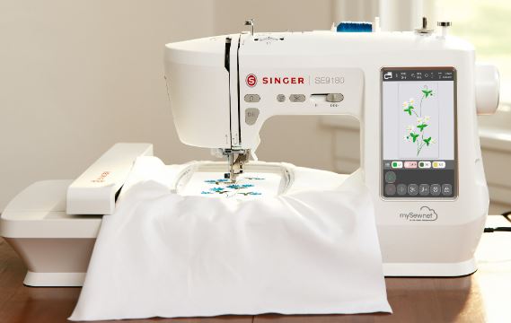 Sewing and embroidery machines are getting smarter every year. The SINGER SE9180 is an app connected sewing machine with WiFi connectivity that gives you quick access to 250 sewing stiches and 150 embroidery designs. It also has a 7-inch touchscreen display.