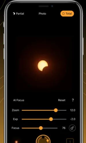 The companion app lets you adjust zoom, exposure, and focus to the get the best quality photo possible. Each kit has 2 solar snap camera filters, glasses, and velcro sets. You can download the app for free.