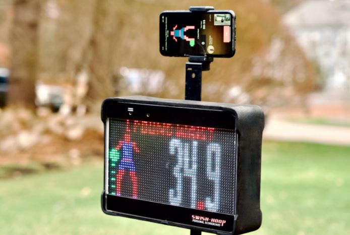 Basketball is fun to watch but mastering it takes a lot of work. You need to be fit and work on your shooting technique, footwork, and other aspects of the game all the time to improve. The Swish Hoop Basketball Skills Trainer is an app enhanced basketball trainer that electronically tracks your shots and gives you feedback on your shooting and dribbling.