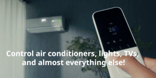 This universal remote has a 2.4-inch LCD screen, touch wheel and buttons for control. It can control infrared devices and SwitchBot devices with Bluetooth. Its 4 buttons at the bottom of the screen can call up menus for your devices. This gadget has a 2000mAh battery that lasts up to 150 days on a single charge.