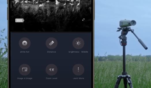 The TS004 has 32GB of storage space. It has a 5000mAh battery that lasts over 11 hours. It connects to the TopInfrared app on your phone for live monitoring. This monocular has video recording capability. It is great for camping and search & rescue missions.