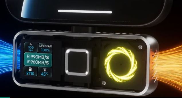 This SSD has a display that lets you monitor its temperature in real-time. It can also show transfer speed, voltage, current, and power. Twopan Pro is not only compatible with iPhone but also XREAL, RayNeo, Viture, and other augmented reality. It supports fast charging up to 40watts. Unlike many other SSDs, this one has fingerprint security to protect your files.