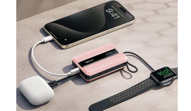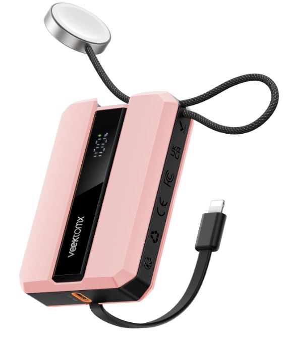 Here is a portable power bank designed to charge your favorite Apple devices fast. The VEEKTOMX 10,000mAh Portable Power Bank features PD 30W fast charging, so it can get your phone to 50% in 30 minutes. It has a built-in Lightning cable to attach to your iPhone. It also serves as a magnetic charging dock for your Apple Watch.