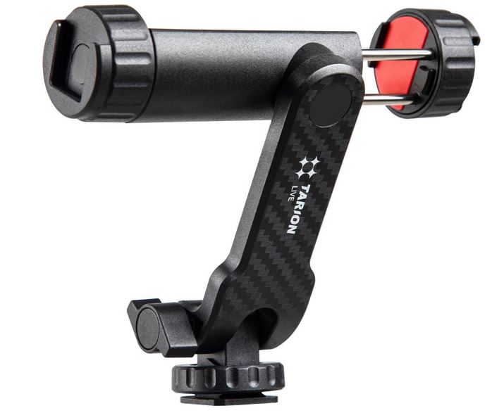 Tarion Tripod Mount: an affordable smartphone holder with 3 cold shoe mounts. It offers 360-degree rotation. It can hold phones from 2.17 to 3.54 inches.