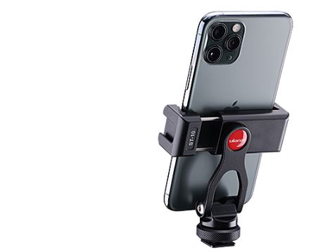 ULANZI ST-10: a vertical iPhone holder with 2 cold shoe mounts and adjustable clamp. It lets you easily mount your phone to a rig or DSLR/mirrorless camera.