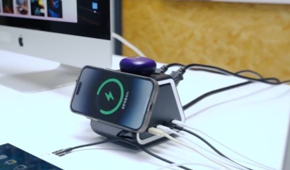 We all have multiple Apple gadgets that need to be charged regularly. The YOMI 9-in-1 Desktop Charger is designed to make your life easier. It comes with 2 AC outlets, 4 USB-C charging ports, and 3 wireless charging spots. It has a compact design and GaN technology for efficient charging. It has a smart chip to deliver the right voltage and current to your devices.