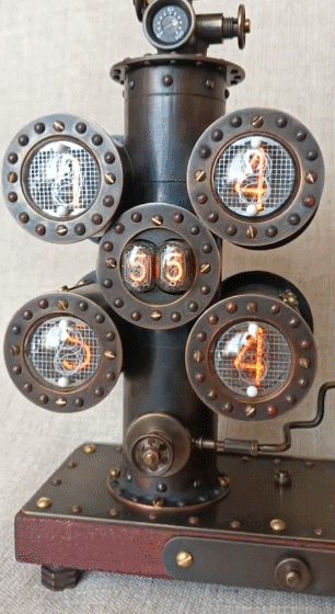 This clock has a cool iPhone stand for hands-free viewing. The clock uses IN-4 and IN-17 tubes. The bad news? Something like this doesn’t come cheap.