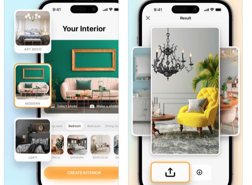Interior AI Home Design: this app helps you redesign your house and rooms. You simply have to take a photo of your home and let AI do the rest. It generates hundreds of original ideas.