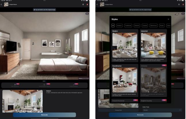 Renovate AI: an artificial intelligence home design app that helps you plan and complete your renovation projects faster. This app generates customizable images of renovated spaces. It also helps you with shopping.