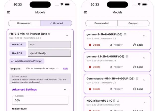 PocketPal AI: another offline LLM app that lets you chat with AI while preserving your privacy. It supports Gemma, Phi, and various other models. You can change the temperature, top_k, and top_p.