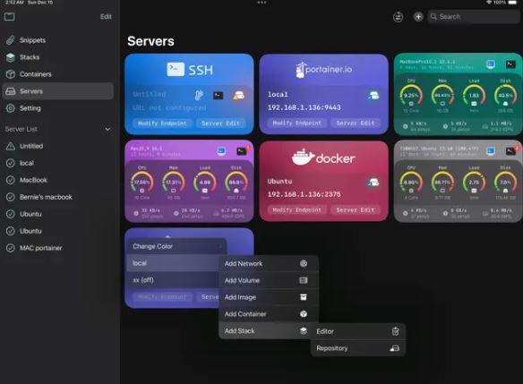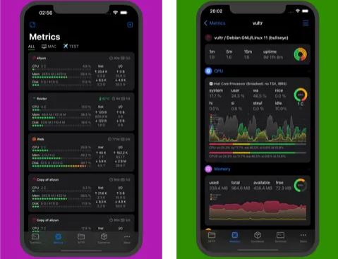 WhaleDeck: lets you connect to your Linux server to monitor its stats. You can also access container logs and details. The pro version lets you manage unlimited servers. It supports iCloud sync. This app works as a dashboard to show you all the relevant metrics.