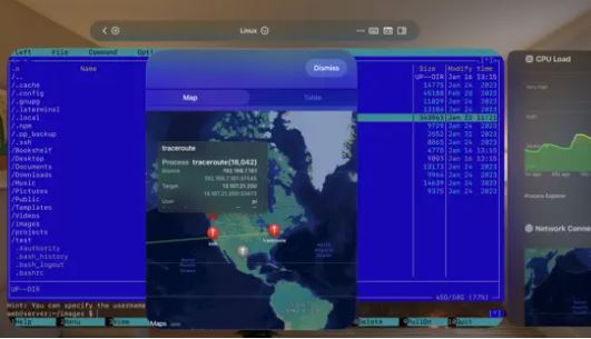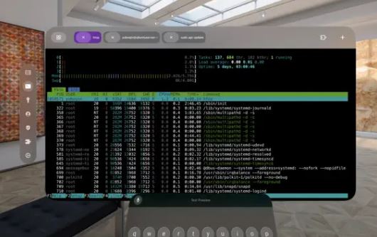 La Terminal: a SSH client for Vision Pro that you can use for resource monitoring (e,g CPU or memory use). With Command Search, you can quickly find commands that you are looking for. It is built on open source code.