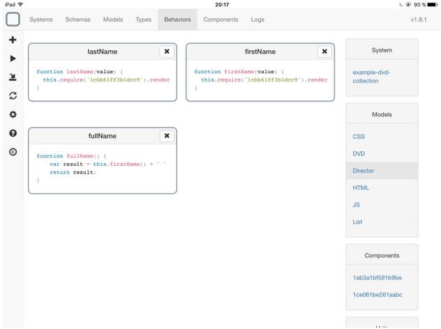 System Designer uses UML for your models. You can use it to define types, classes and relationships between them. Once your model is complete, System Designer creates the skeleton for your methods. It serves as an Object-Document Mapper for your components.