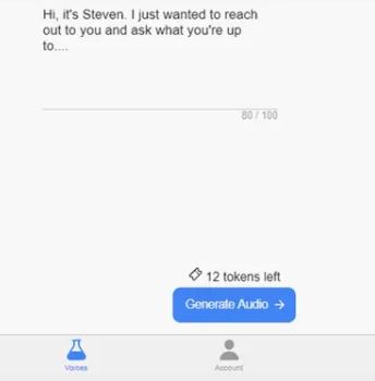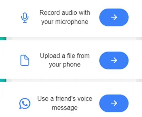 This app has a pretty simple interface. You simply have to record audio with your microphone, upload a file from your phone or use a voice message to get started. This app will then generate custom voices that mimic the tone, pitch, and intonation of what you uploaded.