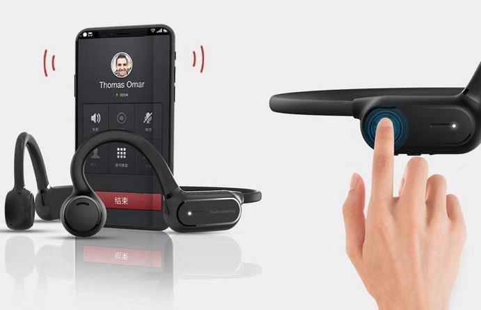 Openear Duet: an open ear headset with 6D panoramic sound. They weigh only 16g not to make you uncomfortable. It has one button to control calls and music. It is IPX5 sweatproof. You can also twist it 360 degrees.