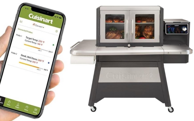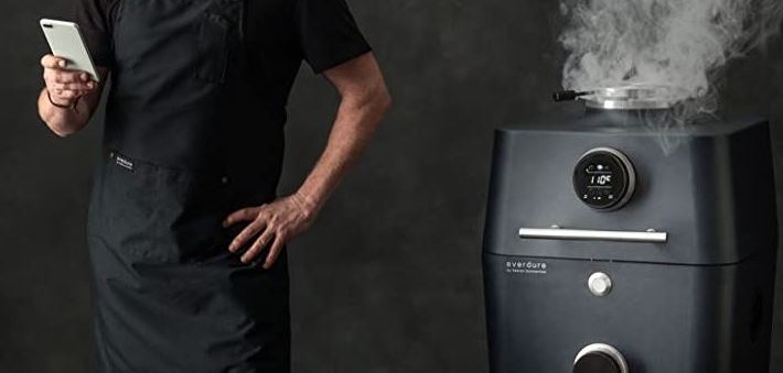 Everdure 4K Charcoal Grill & Smoker: a Bluetooth connected cooker and smoker with 2 probes in its hood and 4 removable internal probes. It can be used for convection roasting, direct grilling, pizza baking, and a lot more.