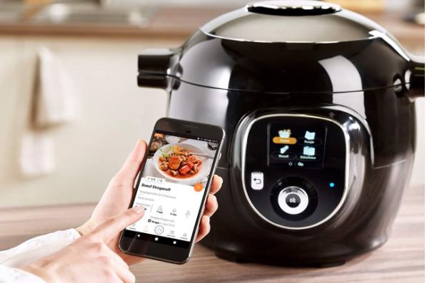 Krups CZ7158 Cook4Me+: a Bluetooth smart multi-cooker with 6L capacity. It comes with over 150 preprogrammed recipes. You can monitor and control the cooking process from your phone. This cooker has 6 settings (pressure, steam, browning, simmering, slowing cooking and warm up).
