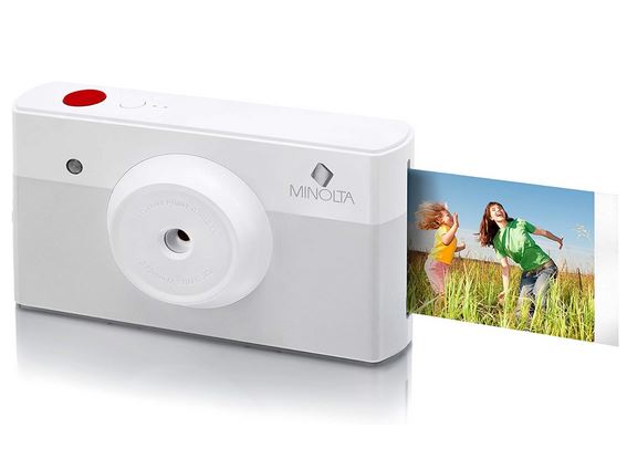 Minolta Instapix: this is a digital camera and Bluetooth printer. It prints 2.1 x 3.4″ credit card size photos in under 50 seconds. It connects to your iOS or Android device, so you can view and edit your photos. This camera also has auto focus, exposure, white balance & gamma correction.