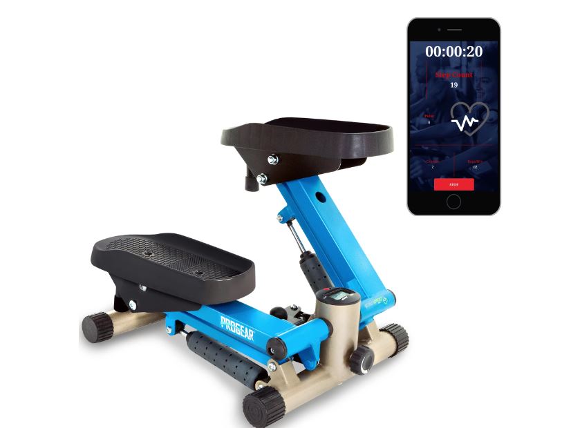 PROGEAR 750: a Bluetooth mini stepper with 3 workout goals. It has a hydraulic air piston system. It has anti-slip foot pedals for a safe workout. It can handle users up to 250lbs.