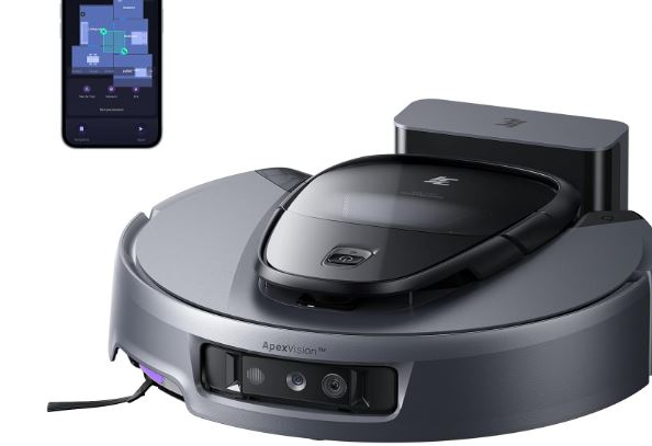 3i G10+ Robot Vacuum: a mop and vacuum combo with debris compression and 18000pa of suction power. It comes with a dToF LiDAR navigation system and AI obstacle avoidance and can recognize over 128 types of objects. It can store up to 60 days’ worth of waste in its 1000ml dustbin.