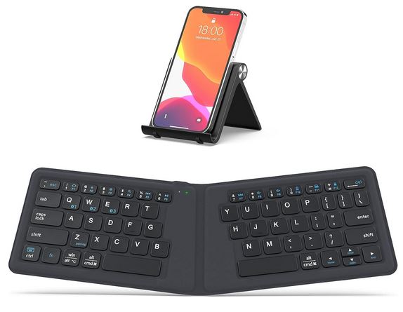 Sikai Mini Keyboard: a foldable Bluetooth keyboard for iPhone and iPad. It comes with a magnetic bracket to hold your iPhone as you type. It has various shortcuts for iOS and Android devices.